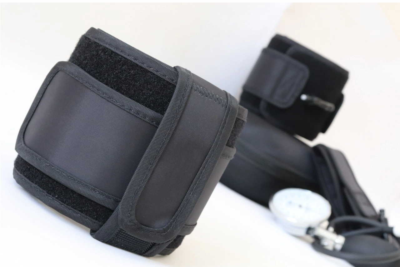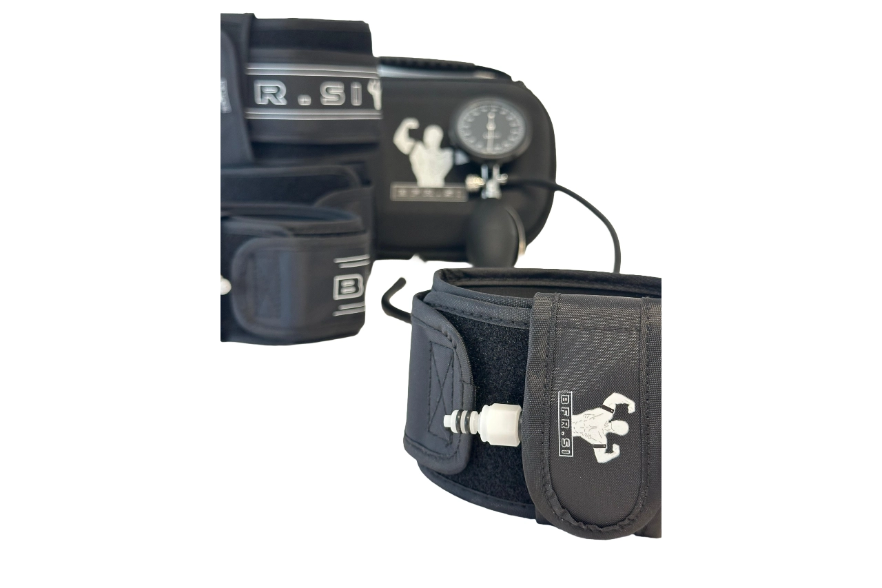 Generally we see two types of cuffs/bands being used for BFR training: pneumatic and non-pneumatic. NON-PNEUMATIC CUFFS : This category includes several materials used to restrict blood flow, most commonly polyester fabric bands with a plastic clip for adjusting the size. Some people also use tight elastic bands around their limbs. While these materials are cheaper, they have their reasons for it. Since they cannot be inflated and therefore cannot accurately measure the pressure or the precise p
